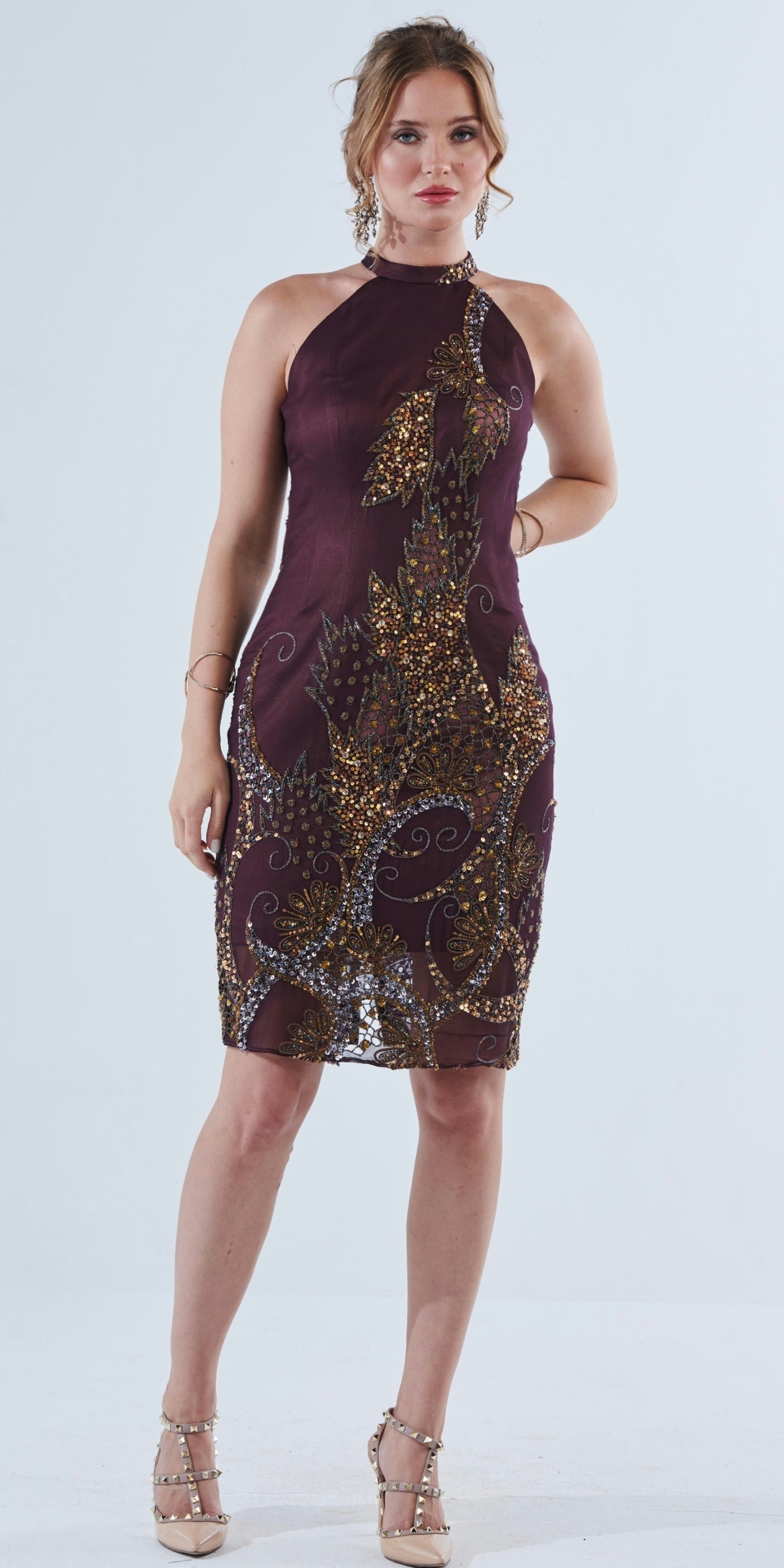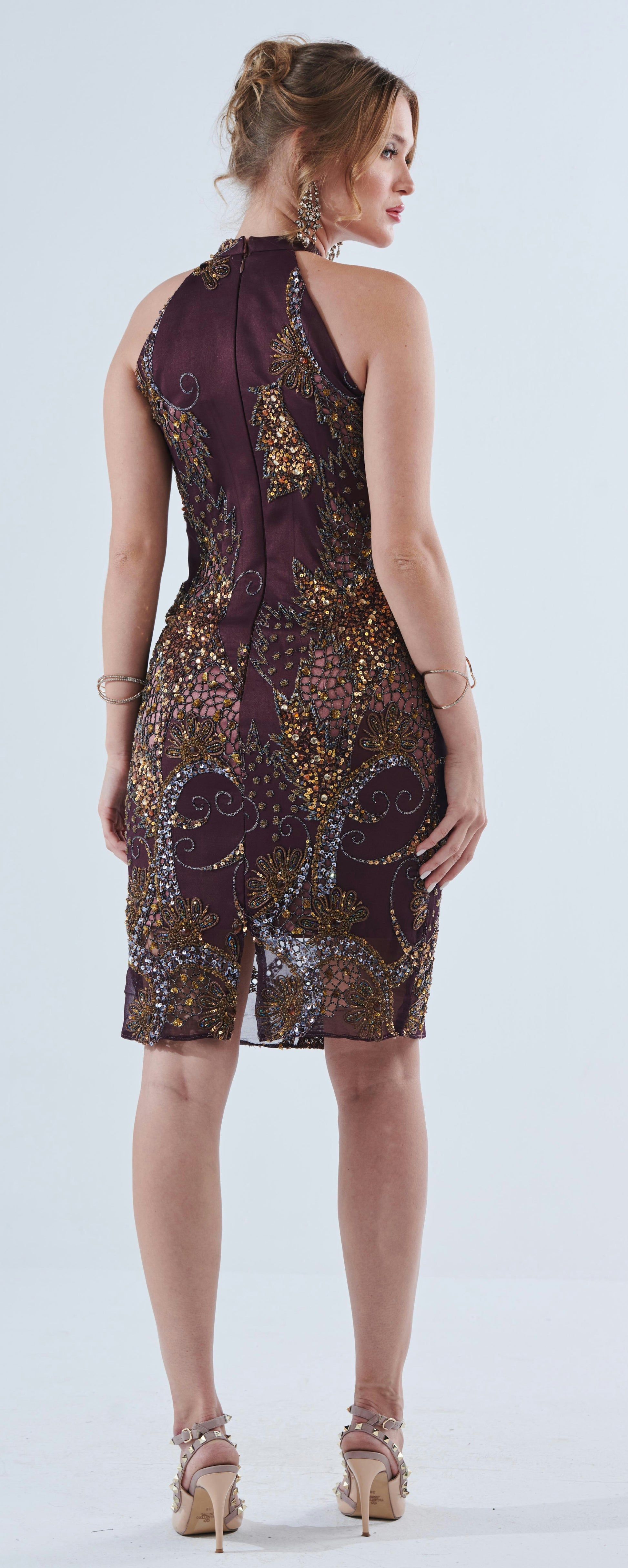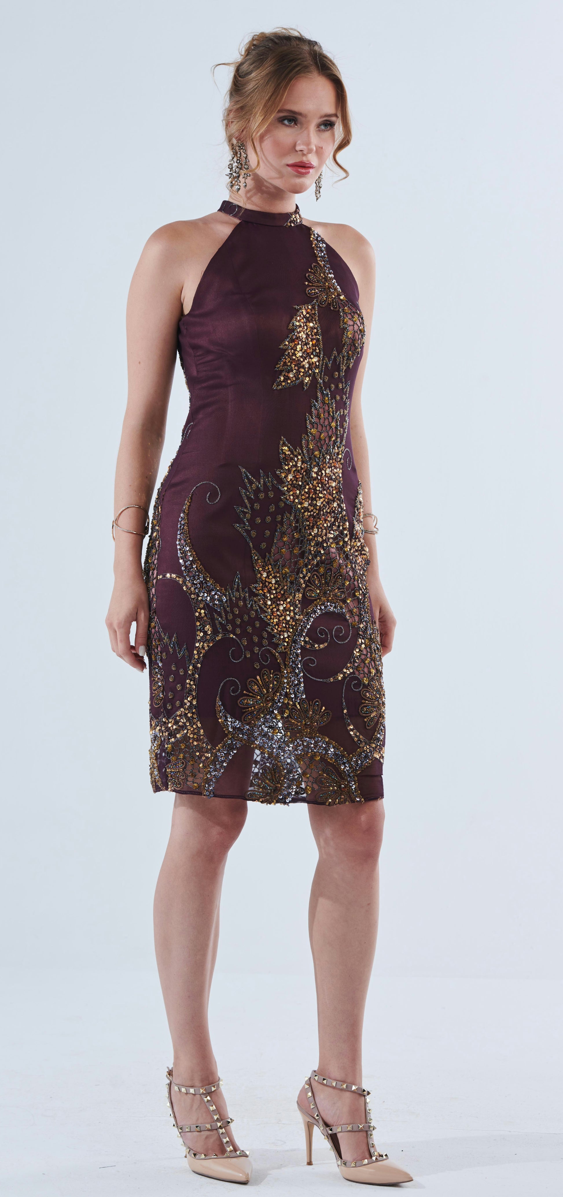 Upgrade your wardrobe with Aadrika's maroon dress, featuring exquisite hand-stitched embroidery and delicate beadwork on luxurious silk chiffon georgette. Add elegance and modern style to any formal occasion with this expertly crafted piece.